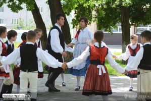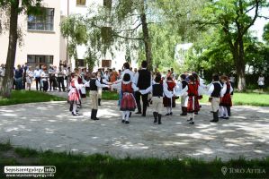 „Kis batyusok" nevű néptánccsoportja „Pünkösdölő" c. előadása, Mikes Kelemen Liceum Sepsiszentgyörgy