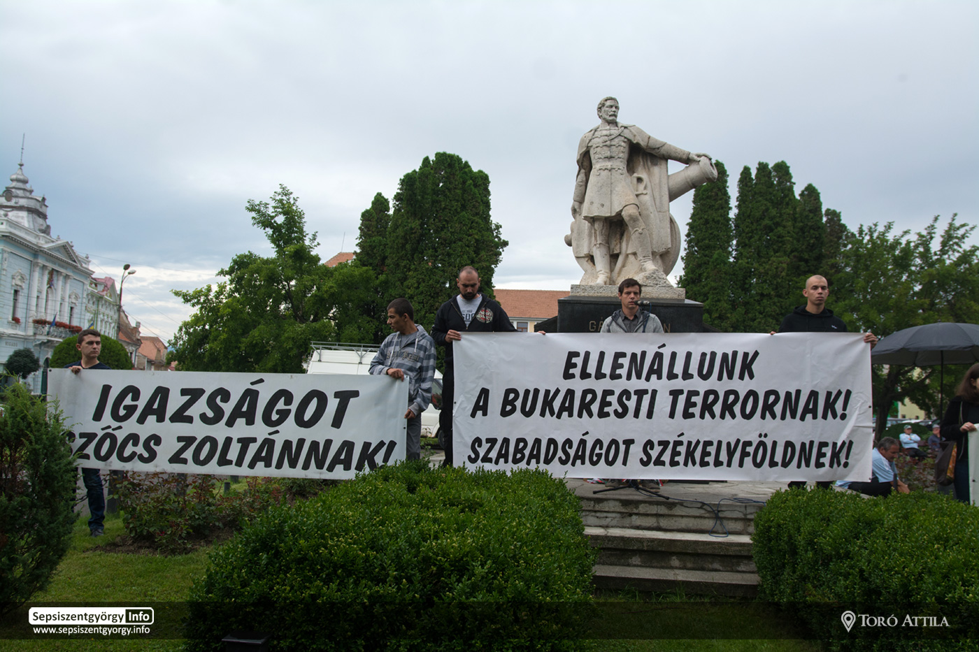 „A ma 18 órára hirdetett szimpátiatüntetés mellett jövő csütörtökön 18 órától nagy méretű, székelyföldi viszonylatban jelentős tiltakozást szerveznek Kézdivásárhelyen – döntötték el csütörtök este a Gyűjtemények Házában tartott megbeszélésen a magyar pártok, ifjúsági és civil szervezetek képviselői.”