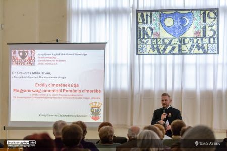 Erdély címerének útja Magyarország címeréből Románia címerébe címmel tart előadást dr. Szekeres Attila István heraldikus, az Erdélyi Címer- és Zászlótudományi Egyesület elnöke, a Nemzetközi Címertani Akadémia levelező tagja Sepsiszentgyörgyön a Székely Nemzeti Múzeum Bartók Termében március 14-én 17 órakor a Nyugdíjasok Sugás Érdekvédelmi Szövetségének hagyományos ünnepi rendezvényén.