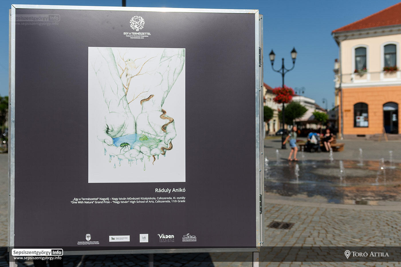 17:00 – „Egy a Természettel” című rajz- és alkotáspályázat díjátadó ünnepsége és kiállítás megnyitója – Sepsiszentgyörgy főtere (Kőszínpad)