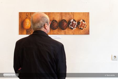 A tojásírás leginkább Közép-Kelet Európában elterjedt technika, és ez tekinthető a legnépszerűbbnek a 19-20. században a Kárpát-medencében is, a berzselés, karcolás, patkolás, drótozás, szalmarátétes díszítések mellett. A „tojásírás bölcsőjeként” emlegetett Gyimesek a kiemelt témája a fotókiállításnak. Az itt fellelhető tojásminták páratlan gazdagsága rendkívüli változatosságot mutat, és kultúránk archaikus rétegére világít rá. A legtöbb minta az osztókörök megrajzolásával kezdődik, ahogy a gyimesi asszonyok mondják: „Keresztet vetek a fődgyire!” Tankó Anna gyimesközéploki származású tojásíró asszony így fogalmazott a vízszintes és függőleges osztókörök metszéspontjára mutatva: „Itt lépik be Isten az ember életébe…”Az alkotó hagyományokon alapuló, egyedi tervezésű és színállású mintái is megjelennek a fotókon. A különböző növényi festékek használata a tojáshéjon különösen izgalmas terület. Sok-sok kísérletezés eredménye az itt bemutatott gazdag színpaletta. Egy különleges, szórványos adatokból ismert gyimesi csángó folklór hagyomány kutatási fázisai is megjelennek a kiállításon: Az összeszáradt, főtt tojásbelső megmunkálása, a „borostyánná” kövült fehérjéből szerelmi ajándék, jegygyűrű és egyéb ékszerek készítése. A falakon húsvéti rítusokat bemutató fotók is megjelennek, úgy mint például a csíkszentkirályi locsolkodás és az oltszakadáti kakaslövés.